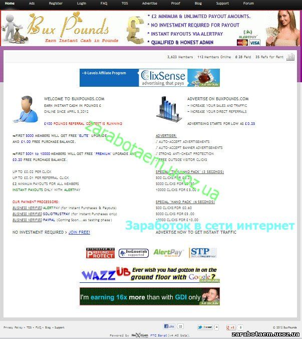Сайт официально стартовал в апреле. Дарит первым 5000 пользователей бесплатно "Elite" что радует. Можно будет быстрее набрать минималку в 2 фунта. В день бывает до 100 ссылок но в основном по 0.0003 - 0.0008 фунта. Набираем минималку вместе.
